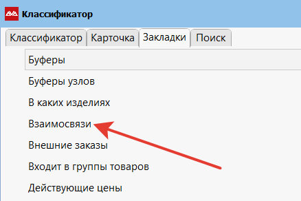 Пункт Главное меню → Управление классификатором → Взаимосвязи