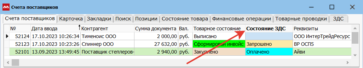 Список счетов поставщиков. Убрали колонку «ЗДС», которая показывала, есть ли по этому счету поставщика заявка на оплату. Вместо нее сделали колонку «Состояние ЗДС». Если по счету поставщика было занесено несколько ЗДСов, то показывается состояние последнего.