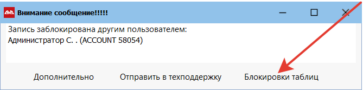 Блокировки записей. Сделали в тексте сообщения «Запись заблокирована» кнопку «Блокировки таблиц». При нажатии на нее система откроет список блокировок этой таблицы, из которого можно отключить пользователя, который блокирует.