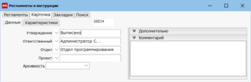 Регламенты и инструкции. Раньше сотрудник, заносивший регламент, и сотрудник, ознакамливающийся с ним, использовали на карточке регламента одну и ту же кнопку «Статус ознакомления». Теперь сделали красиво: каждому по кнопке. Заносящий для утверждения использует кнопку «Утверждение».