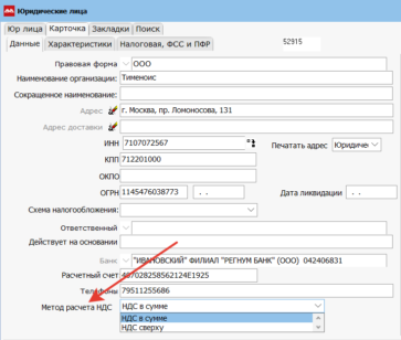 Метод расчета НДС. Мы наконец-то сделали галочки для выбора метода расчета НДС: НДС от суммы, и НДС сверху. Настройку «Метода расчета НДС» можно выбрать на карточке юр лица (Главное меню → Отдел продаж → Юридические лица) и он скопируется в счет клиенту.