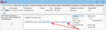Комментарий в документах и напоминаниях. Если в комментарии к документу добавить ссылку из программы (например, Артикул№97668Test или СП№52092Test), то она будет показываться в виде гиперссылки. По правой кнопке мыши можно либо «Открыть» документ в новом окне, либо «Копировать» ссылку (выделять текст при этом не нужно).