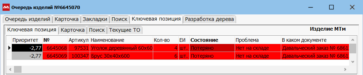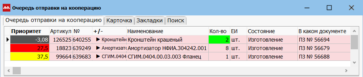 Запуск в производство по кооперации. Если в очереди отправки на кооперацию ячейка с количеством детали окрашена в зеленый цвет, это значит, что все комплектующие/материалы находятся на нашем складе и можно их отправлять кооператору (оформлять перемещение в цех).