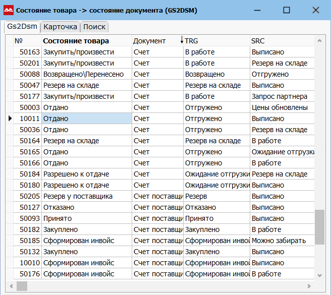Системные настройки → Настройка системы → Состояние товара → состояние документа (GS2DSM)