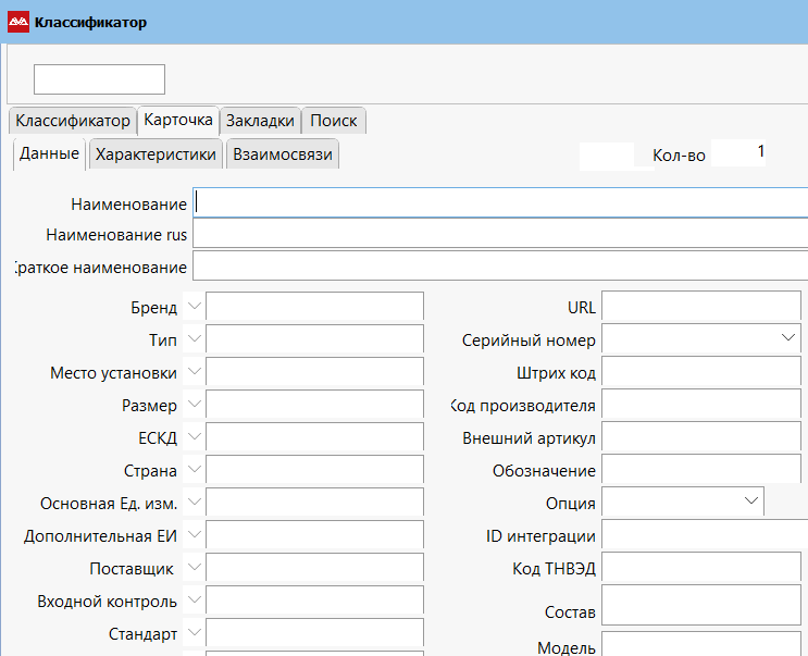 Открывается пустой классификатор. Переходим на карточку, как показано ниже.