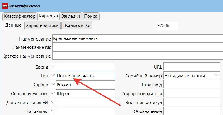 Зайдите в классификатор Главное меню → Классификатор и занесите новую запись. Выберите тип «Постоянная часть» (50625).