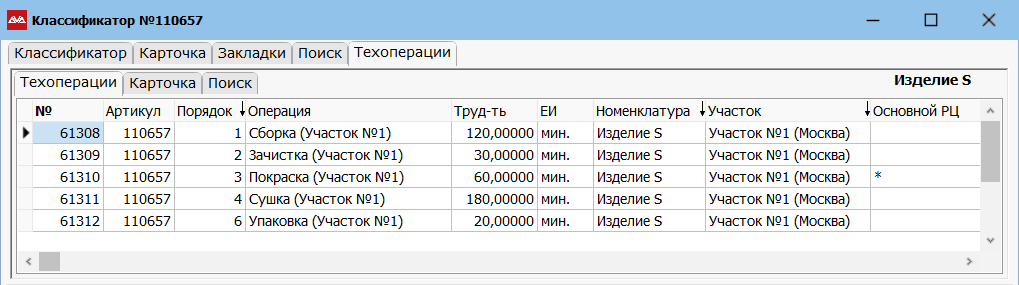 Позиционируйтесь в классификаторе на артикуле-«доноре», чьи техоперации будете копировать. Перейдите в «Закладки»
