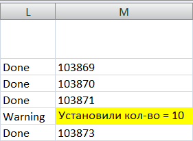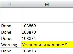 После окончания импорта система в вашем Excel файле в каждой строке напишет ID занесенной записи в базу и комментарий по результату загрузки. Если импорт прошел успешно, вы увидите ID записи и слово «done». При повторной загрузке файла строчки, где написан ID занесенной записи, загружаться не будут.