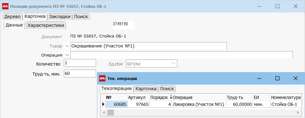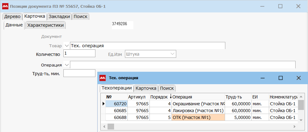 В открывшейся форме покажется список техопераций данного изделия, но только тех, которых нет в этом ПЗ с точки зрения «Порядка». Выберите нужную. Сохраните.