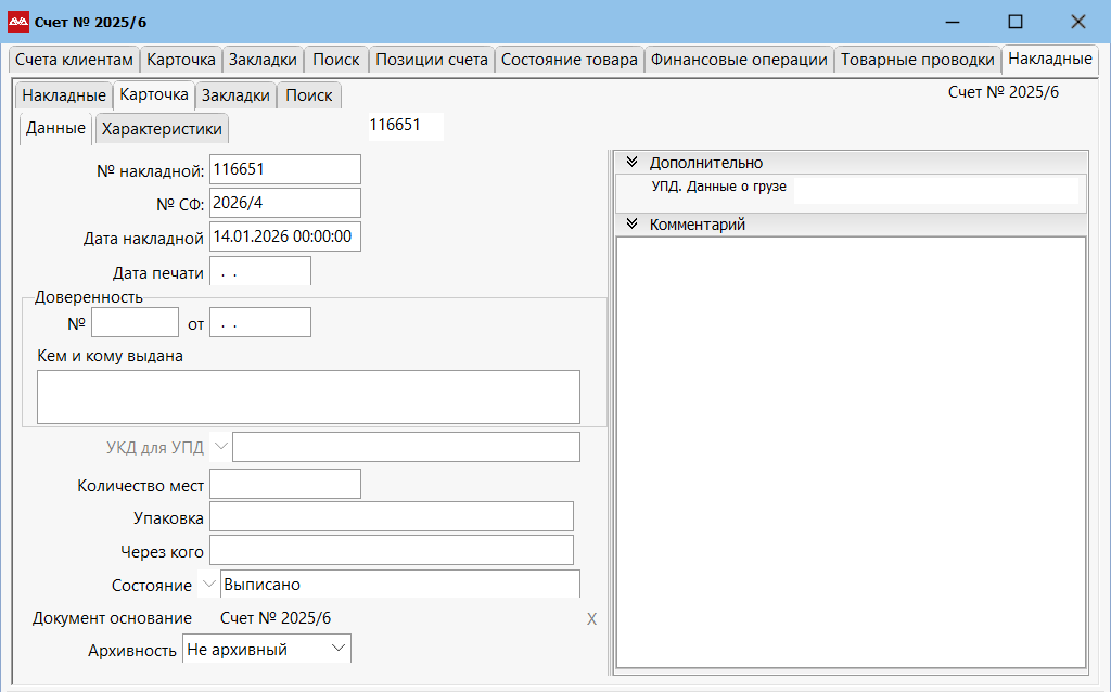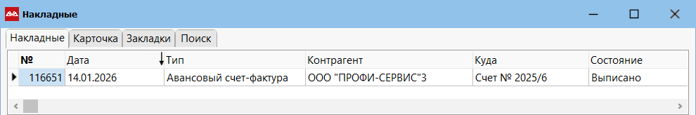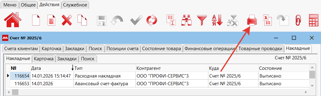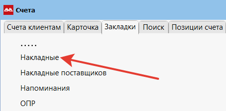 Чтобы распечатать и отправить документ по ЭДО, находясь на счете клиенту, перейдите в «Закладки» и выберите пункт «Накладные».