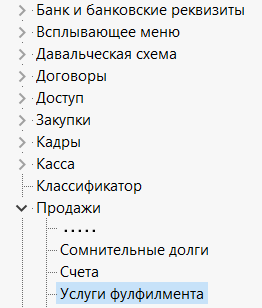 Документы «Услуги фулфилмента» отображаются в пункте Главное меню → Продажи → Услуги фулфилмента.