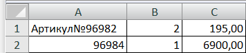 В этом случае расположение колонок в Excel-файле должно быть следующим: артикул (который в программе), количество, цена.