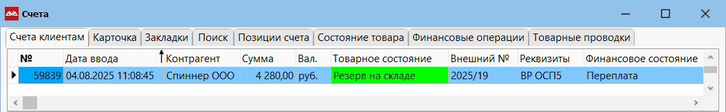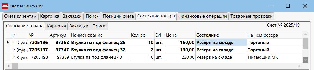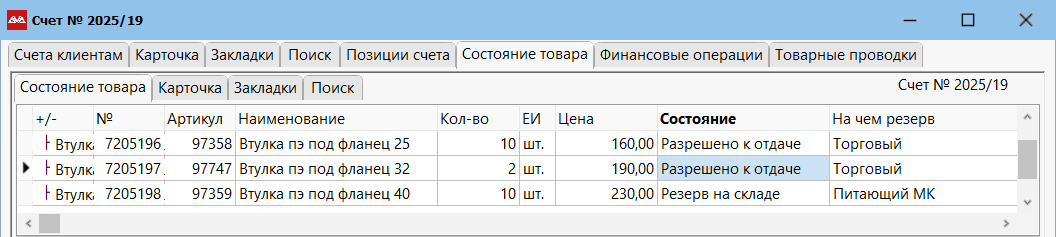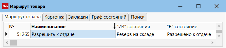 Откройте форму состояние товара. Если товарных позиций, которые необходимо разрешить к отдаче, несколько, отметьте их пробелом. Пометка всех записей в списке — CTRL+A.