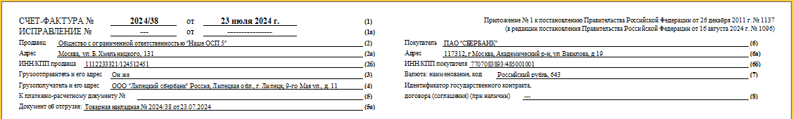 ИНН/КПП покупателя — ИНН/КПП «Липецкого Сбербанка».