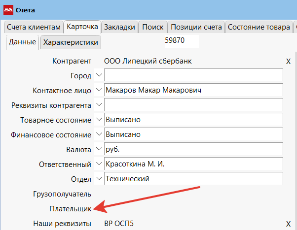 Чтобы в форме Торг-12 в качестве плательщика указывалось это же юр. лицо, нужно на карточке счета нажать кнопку «Плательщик» и выбрать то же самое юридическое лицо.
