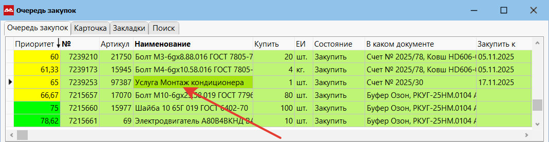 В «Очереди закупок», находясь на услуге, нажмите корректировать запись (F2) и выполните движение «Сформировать ЗДС на услугу». Предварительно согласуйте с нами название статьи затрат, по которой будете привязывать такие услуги. Оформите ЗДС, он автоматически выберется, сохраните запись.