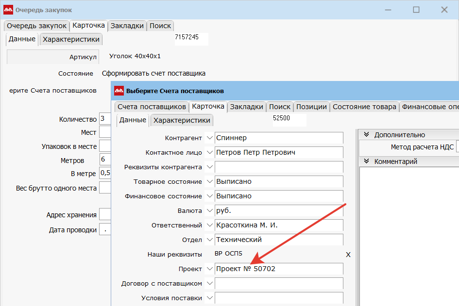 Когда из «Очереди закупок» вы будете формировать счет поставщика, госконтракт (проект) на карточку счета поставщика проставится автоматически.