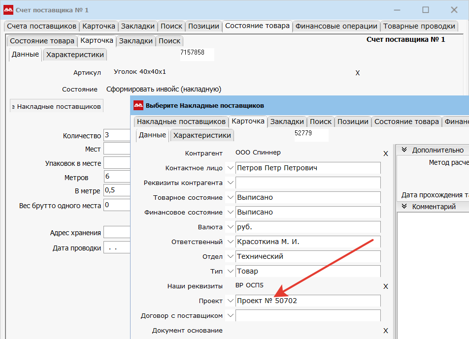 Далее, когда вы из этого счета поставщика будете формировать накладную поставщика, то и туда госконтракт (проект) копируется автоматически.