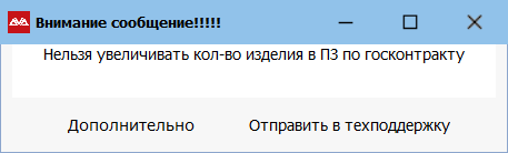 В производственном задании по госконтракту нельзя увеличивать количество, изготавливаемой детали. Сколько положено по госконтракту, столько и делаем. Программа не позволит увеличить количество ни просто в позициях ПЗ (будет выведено сообщение «Нельзя увеличивать кол-во изделия в ПЗ по госконтракту»),
