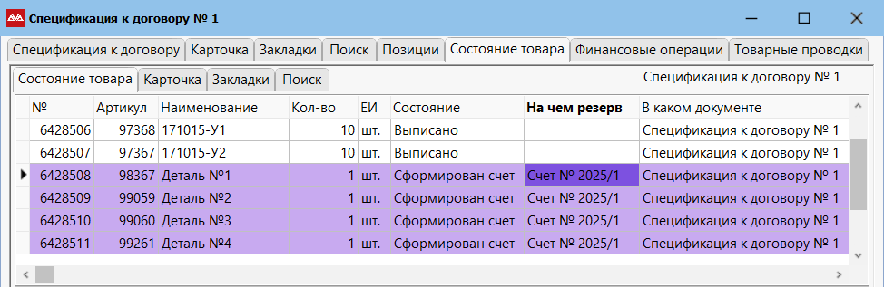 Состояние позиций нашей спецификации (F6) будет выглядеть так: