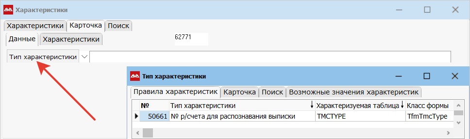 Система умеет распознавать платежи по расчетному счету получателя. Встаньте на «Статью», нажмите Общее → Характеристики.