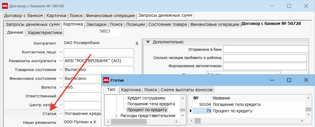 По данному типу договоров возможно формирование двух видов ЗДС: «Погашение тела кредита» и «Процент по кредиту».