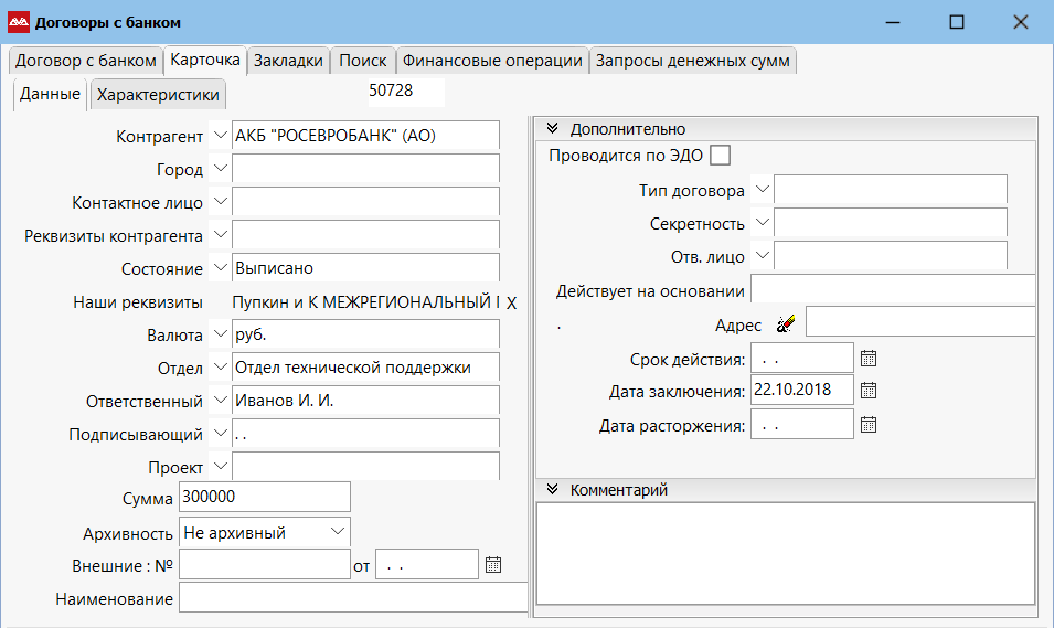 Главное меню → Банк и банковские реквизиты → Банковские продукты → Договоры с банком
