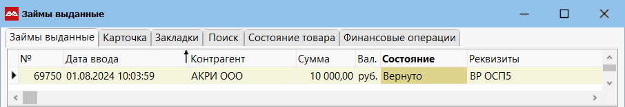 Займы предназначены для выдачи займов контрагентам. Главное меню → Финансы → Займы → Займы выданные