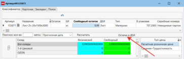В «подвале» формы вы видите агрегированную информацию по всем складам + дополнительную информацию.