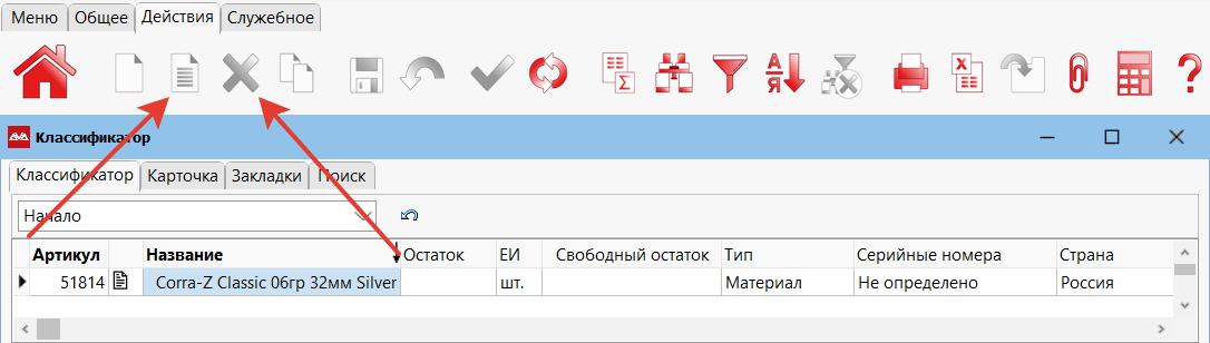 Копировать карточку. Этот пункт позволяет скопировать только карточку артикула. При копировании записи через Действия → Копировать запись скопируются: карточка артикула, дерево, цены и техоперации.