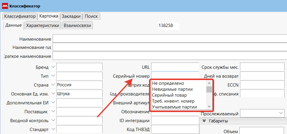 - Не определено. Этот признак можно использовать только для изделий. Например, в случае когда не известно будут ли применяться серийные номера или нет. Для материалов надо всегда ставить или «учитываемые партии», или «невидимые партии».