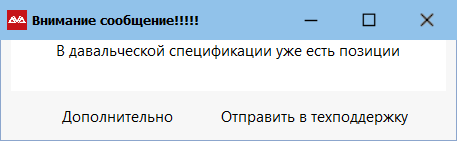 Если спецификация не пустая, то есть там уже есть позиции, то программа выведет сообщение «В давальческой спецификации уже есть позиции».