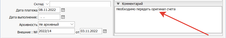 Для этого позиционируйтесь на нужном счете и нажмите корректировать запись. В поле «Комментарий» напишите текст своего сообщения. Сохраните запись.