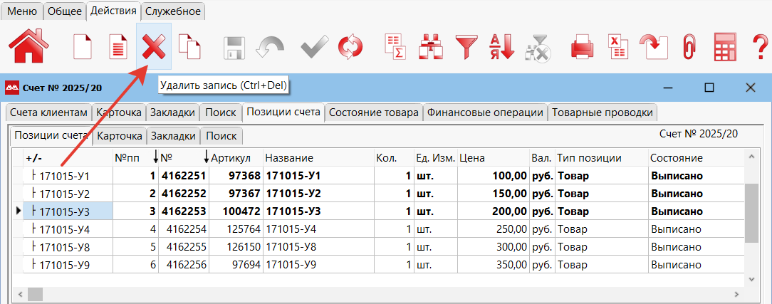 Для удаления группы записей отметьте их пробелом и нажмите кнопку «Удалить».