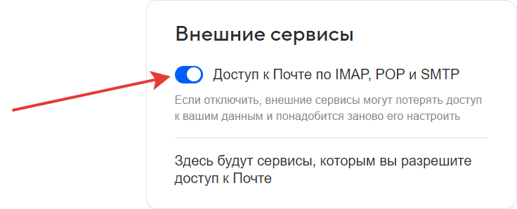 Включите «Доступ к Почте по IMAP, POP и SMTP».