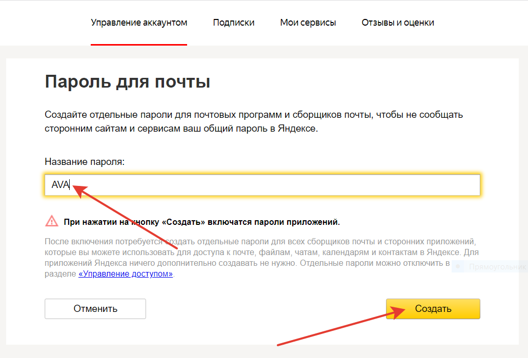 В открывшемся окне введите название пароля, любое произвольное наименование, например, AVA.