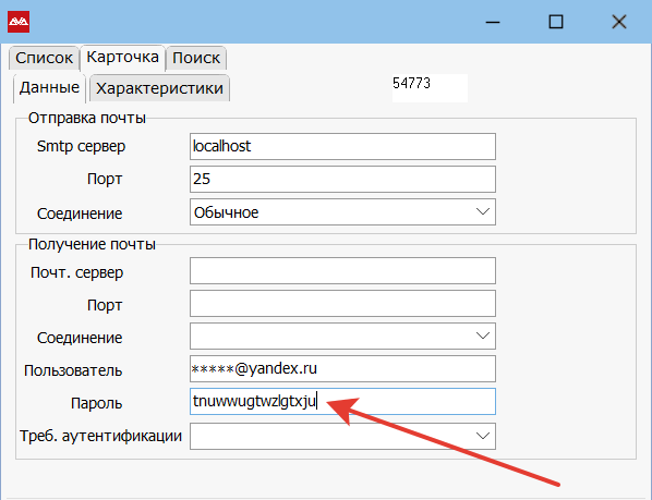 Вставьте пароль в программу в настройках почты в качестве пароля к почтовому ящику.