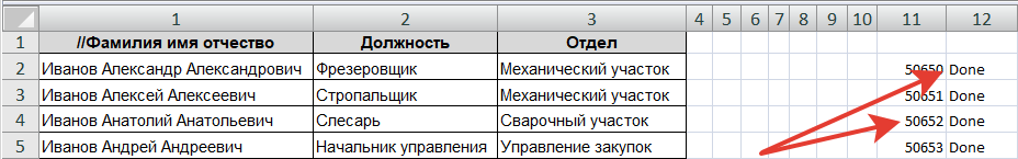 Результат: После окончания импорта система в Excel файле в каждой строке напишет ID занесенной записи в базу и слово «Done».