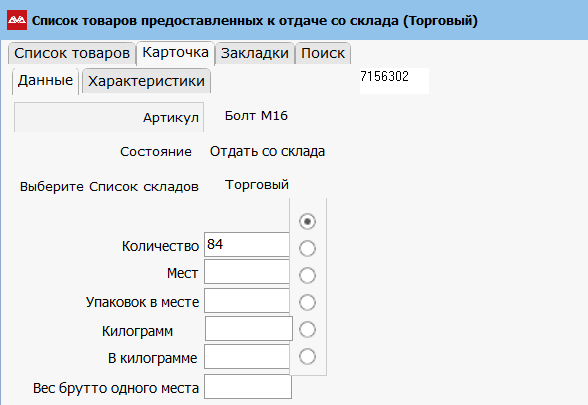 Однако надо понимать, что питающий склад не будет нарушать упаковку и отдавать в цех будет упаковкой. Например, у нас болты, которые нужны для выполнения ПЗ. Для этого ПЗ их нужно 84 штуки. В упаковке ровно 100. Система подготовит перемещение на 84 штуки. Но при отдаче со склада кладовщик должен указать 100. Также кладовщик при отгрузке может оперировать упаковками, если вы предварительно в классификаторе укажете соотношение шт ↔ упаковка.