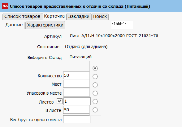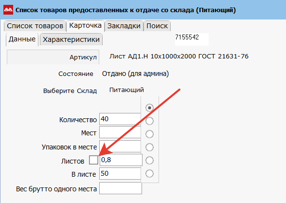 При отдаче со склада материалов, измеряющихся в двух единицах измерения, есть возможность поставить «галочку», которая будет увеличивать количество до целого.