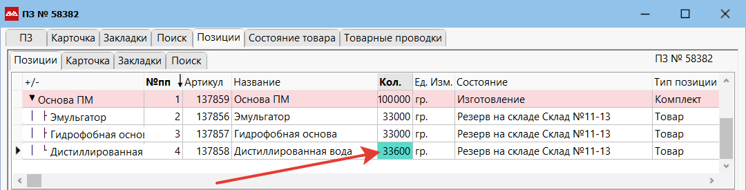 Для увеличения количества перейдите в «Позиции» ПЗ, нажмите на количестве F4 и увеличьте количество производимой позиции. Сохраните изменения.