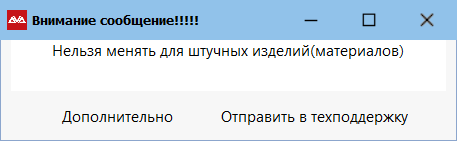 Если не соблюдены все условия, программа сообщит об этом (выведет сообщение, например, «Нельзя менять для штучных изделий (материалов»)) и не сохранит изменения.