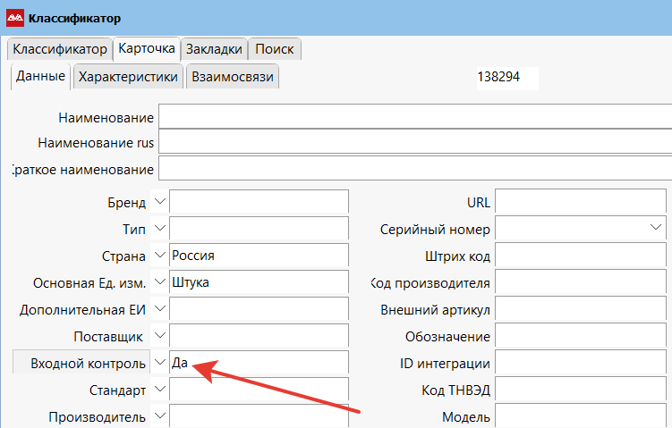 Протипизируйте товары, требующие прохождения ВК. Для этого на карточке товара в классификаторе в поле «Входной контроль» поставьте «Да».