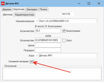 Если в «матрешке» занесено несколько позиций, например, основной и вспомогательные материалы, то основной можно пометить галочкой «Основной материал»,
