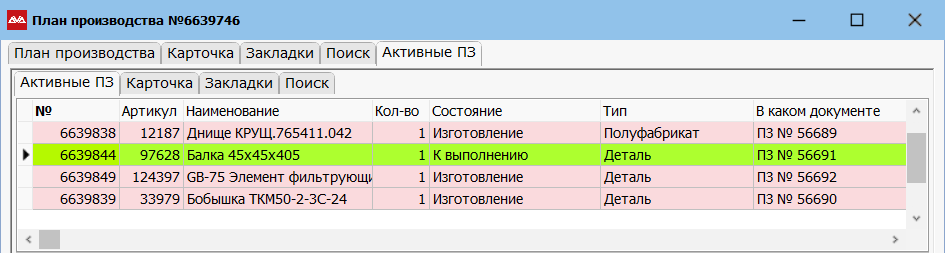 Позиции в плане производства «светятся» до тех пор, пока они не будут произведены.