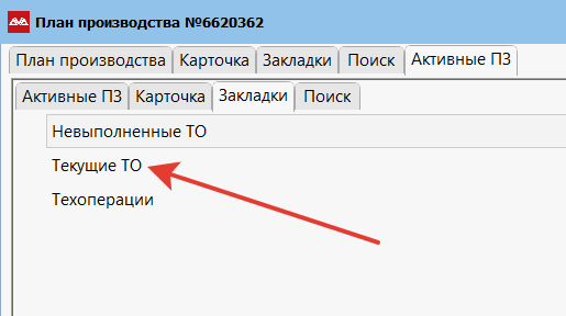 Если в «Закладках» выбрать пункт «Текущие ТО»,