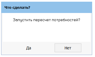 Система задаст вопрос «Запустить пересчет потребностей?», ответьте «Да».
