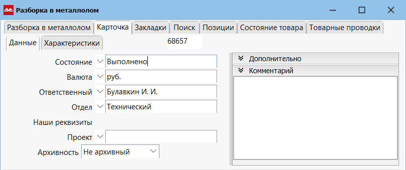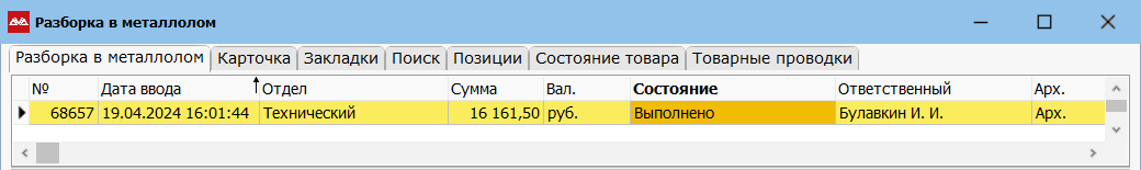 После этого «Разборка в металлолом» перейдет в состояние «Выполнено» и затем заархивируется.