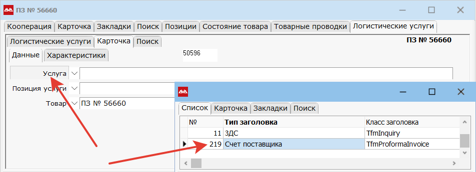 Чтобы привязать услуги по изготовлению к каждому виду деталей (узлов), перейдите в счета поставщиков (Главное меню → Закупки → Счета поставщиков) и, находясь на нужном СП, перейдите в позиции. С позиции, которую привязываете, перейдите в закладку «Логистические услуги», занесите новую запись.