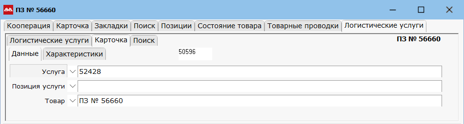 Для отвязки услуги от ПЗ, действуем просто — находясь на ПЗ переходим в «Закладки», выбираем пункт «Логистические услуги», позиционируемся на ненужной записи и удаляем.